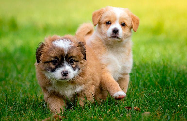 dos-cachorros-jugando-sobre-el-cesped
