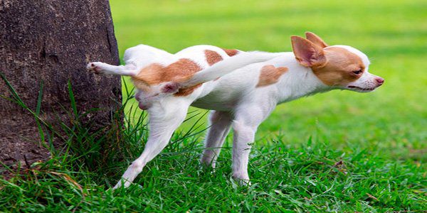 perro orinando en un arbol