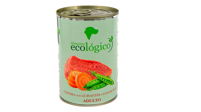 - Ternera (30%)**, agua de cocción, guisantes (3%)**, zanahorias (3%)**, sustancias minerales, aceite de girasol. ** ingrediente ecológico certificado.