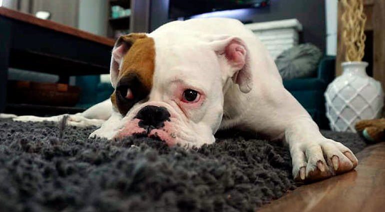 perro-tumbado-sobre-alfombra-con-pulgas